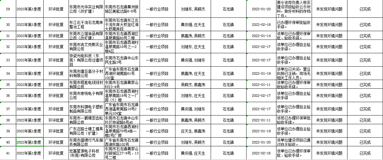 2022年东莞市石龙镇第1季度随机抽查情况公示表
