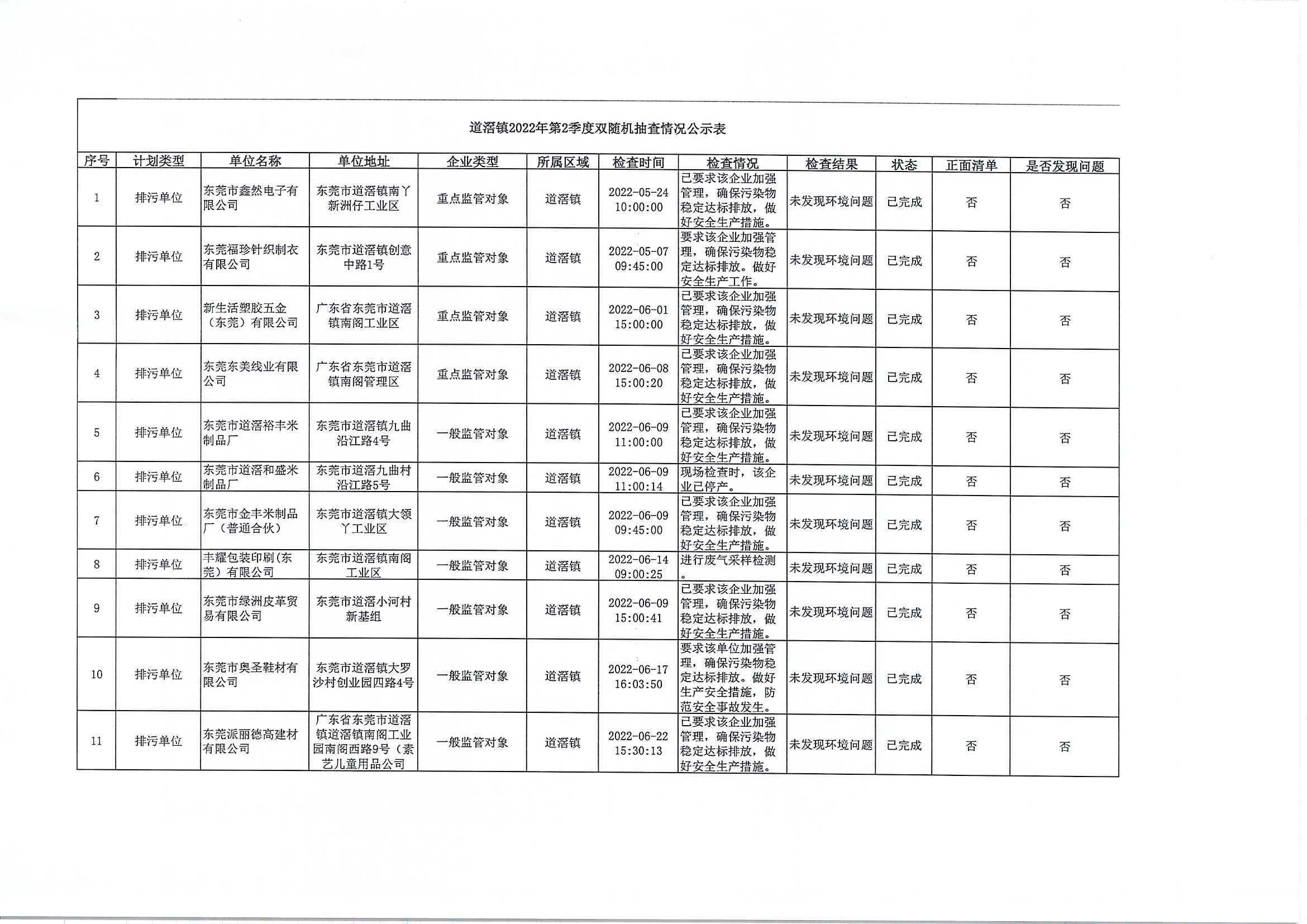 2022年道滘镇第二季度排污单位双随机检查情况公示