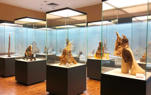 感受完莞香袅袅的香气,我们不妨继续观赏来自古今中外的沉香珍品。展柜里存放的沉香,有些被工艺大师细心雕刻,印上独一无二的画面,成为一件艺术品。有些展品则造型天然不羁,是大自然的鬼斧神工。