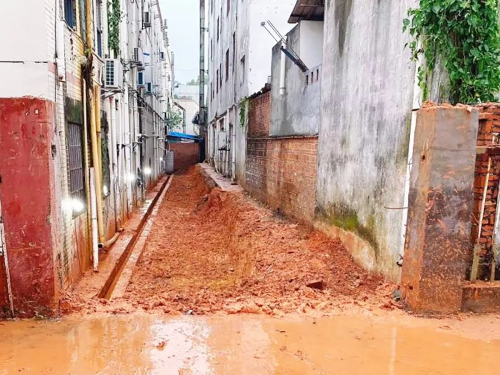 ▲现场封闭巷道内堆放有大量建筑、生活垃圾