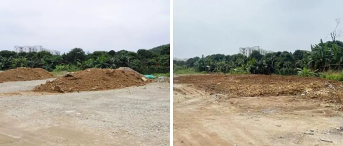 ▲整改前(左):露天堆放建筑垃圾、渣土 ▲整改后(右):建筑垃圾、渣土已清理