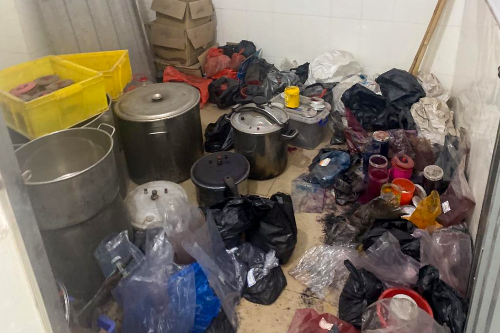 虎门分局执法人员联合属地社区工作人员对该作坊执行断水、断电和清理原料、设备、场地措施。执法人员同时对该无证作坊经营者开展普法教育。